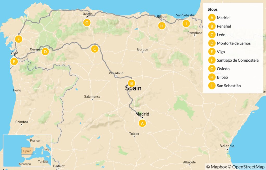 Map of Ultimate Northern Spain Road Trip: Madrid, Galicia & Basque Country – 13 days
