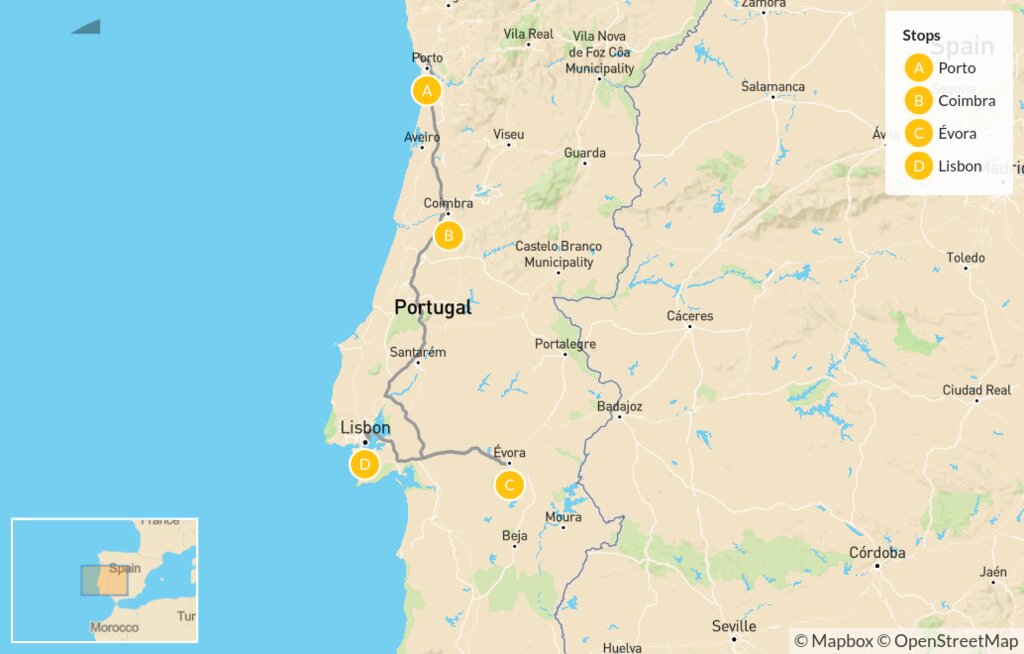 Map of Ultimate Portugal: Porto, Coimbra, Évora & Lisbon: 13 Days