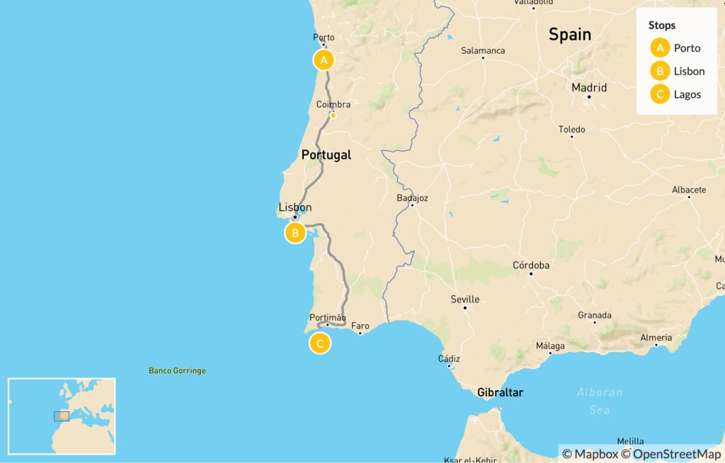 Map of Ultimate Portugal: Porto, Lisbon & Lagos – 11 Days