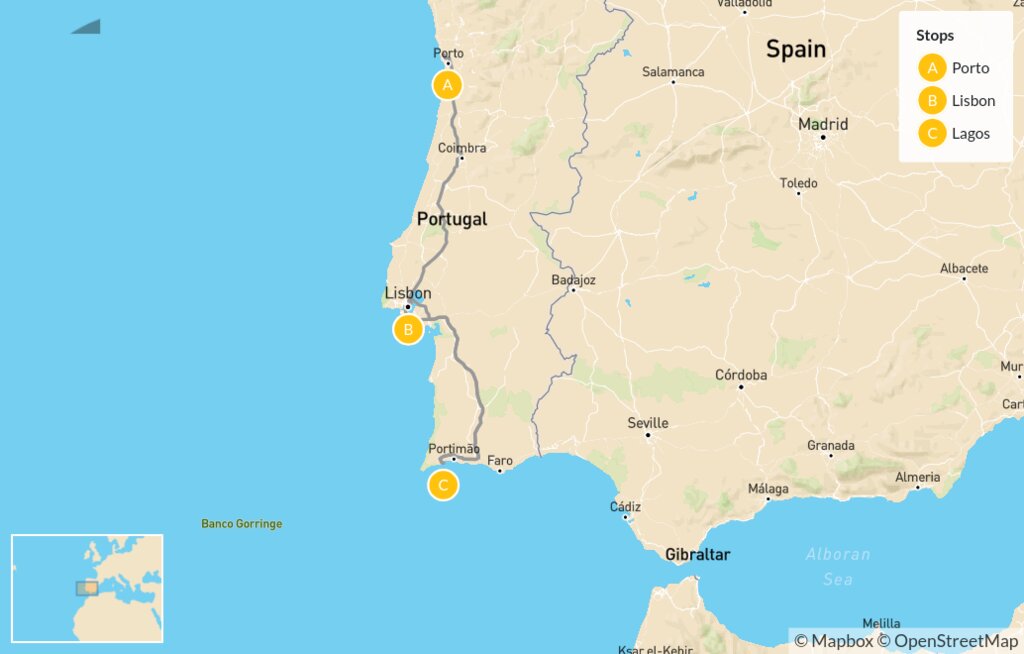 Map of Ultimate Portugal: Porto, Lisbon & Lagos – 12 Days