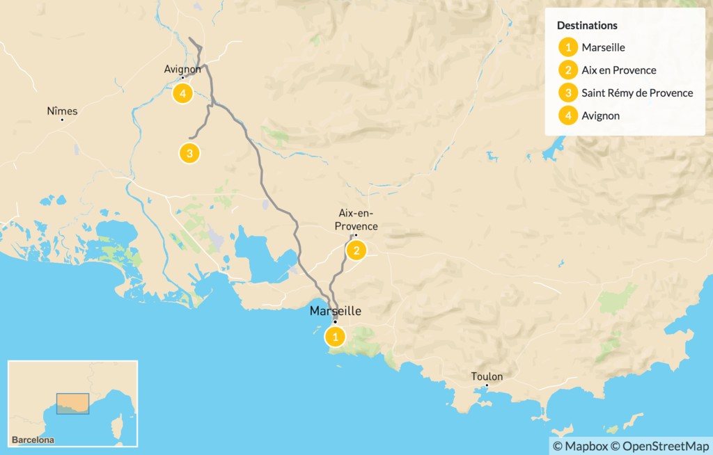 | Day 1 | Arrive in Marseille, Explore | Marseille |