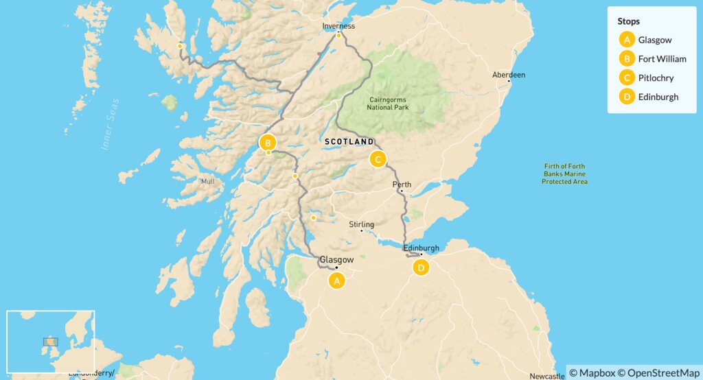 Map of Ultimate Scotland Road Trip: Cities, Castles & Countryside – 8 Days