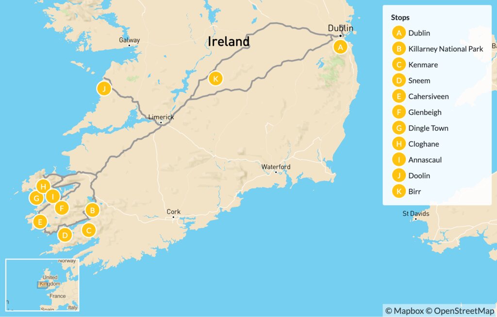 Map of Ultimate Southwest Ireland Hiking Adventure – 15 Days
