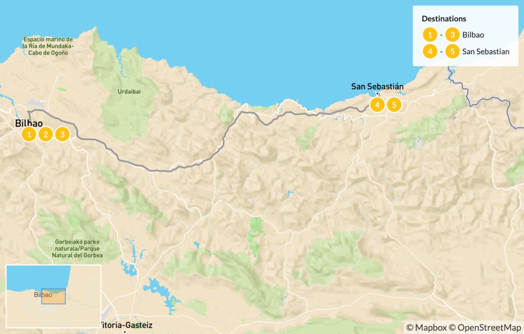 Map of Ultimate Tour of Basque Country: Bilbao & San Sebastian – 6 Days