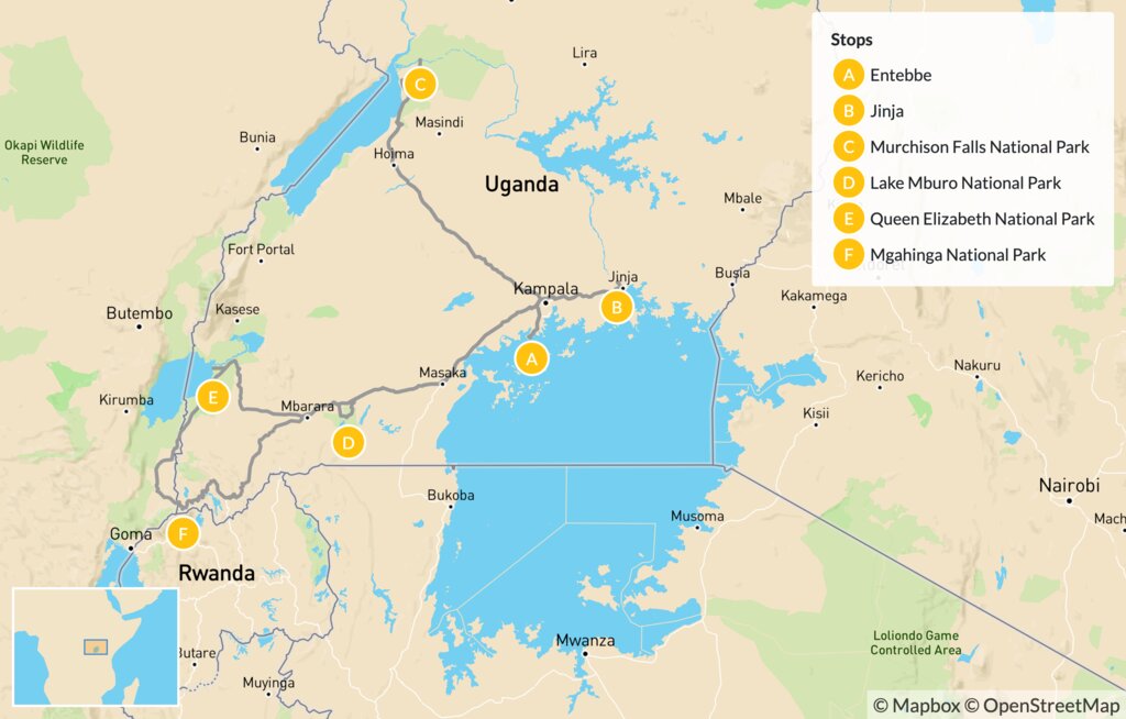 Map of Ultimate Uganda Wildlife Adventure – 18 Days