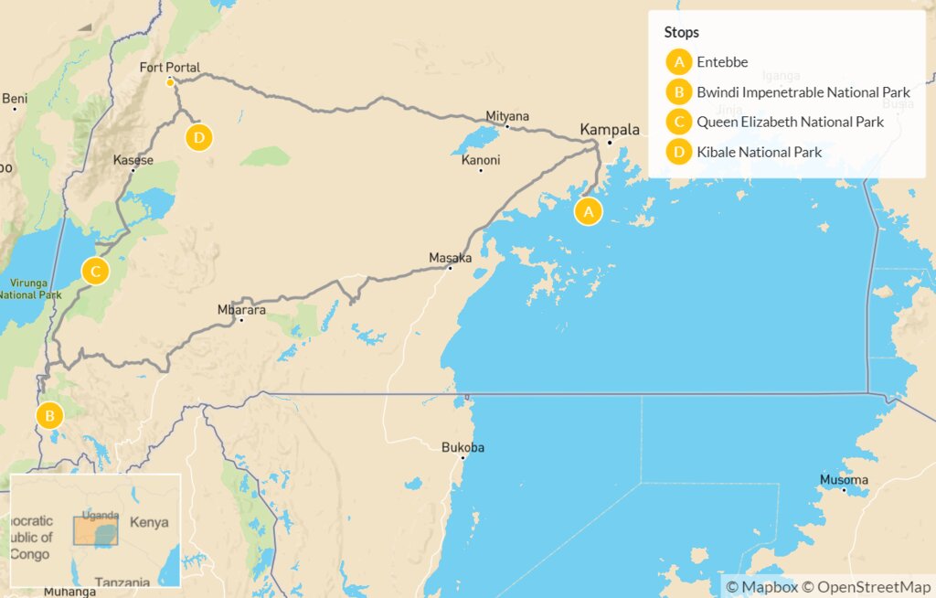 Map of Ultimate Uganda Wildlife Tour: National Parks & Cultural Highlights – 9 Days