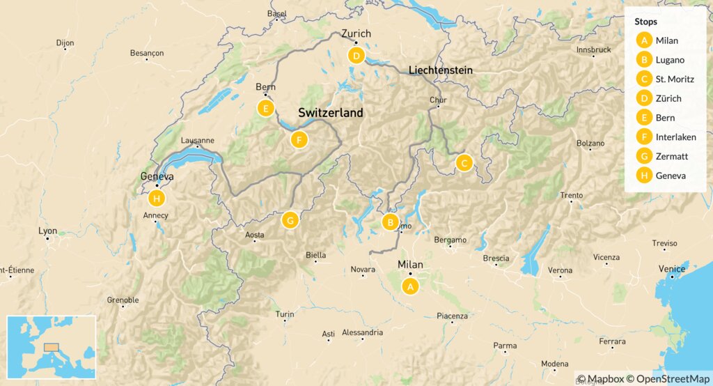 You’ve traveled across Switzerland and enjoyed plenty of Alpine adventures along the way. Alas, now it’s time to say farewell. In the morning, hit the road for the scenic three-hour journey west to Geneva and the international airport, where you’ll drop off your rental car and catch your flight home. Until next time!