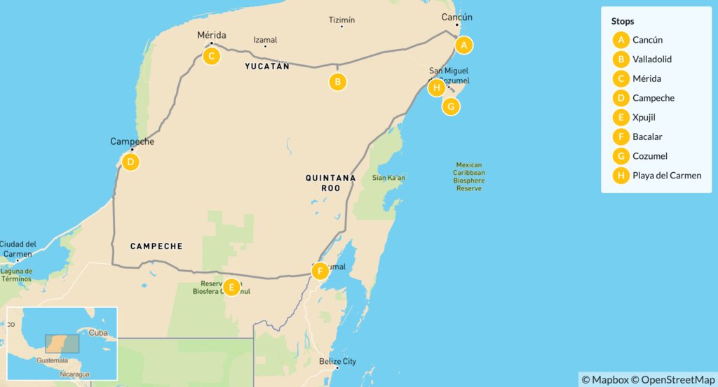 Map of Ultimate Yucatán Road Trip: History, Culture & Nature – 14 Days