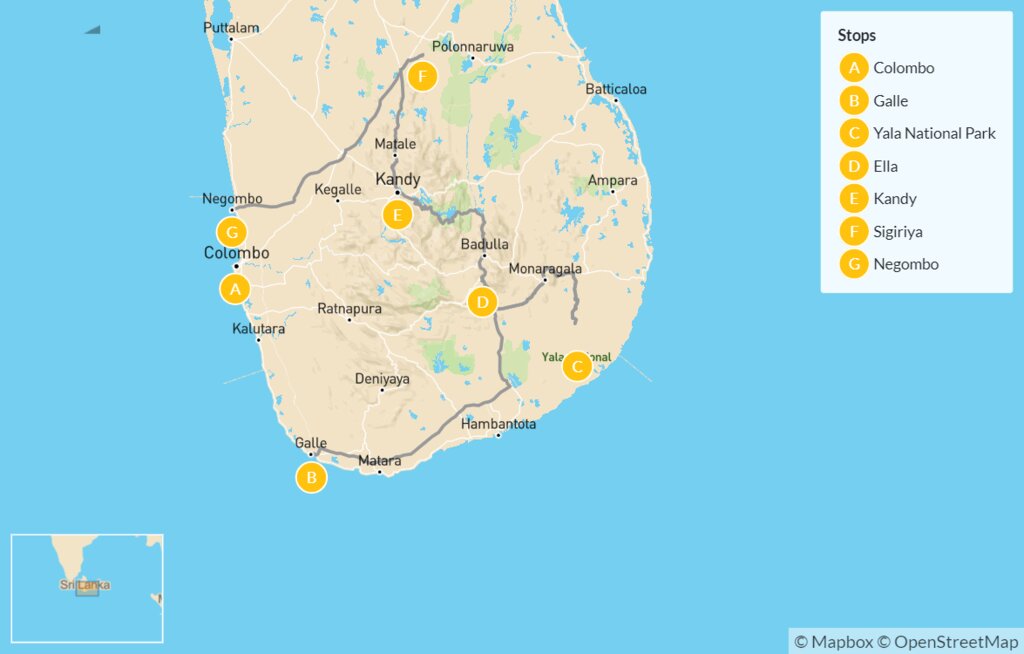 Map of Uncover Sri Lanka’s Rich Heritage & Scenic Beauty – 11 Days