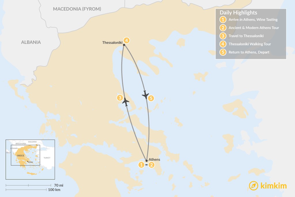 Map of Urban Adventures and History in Athens & Thessaloniki – 5 Days