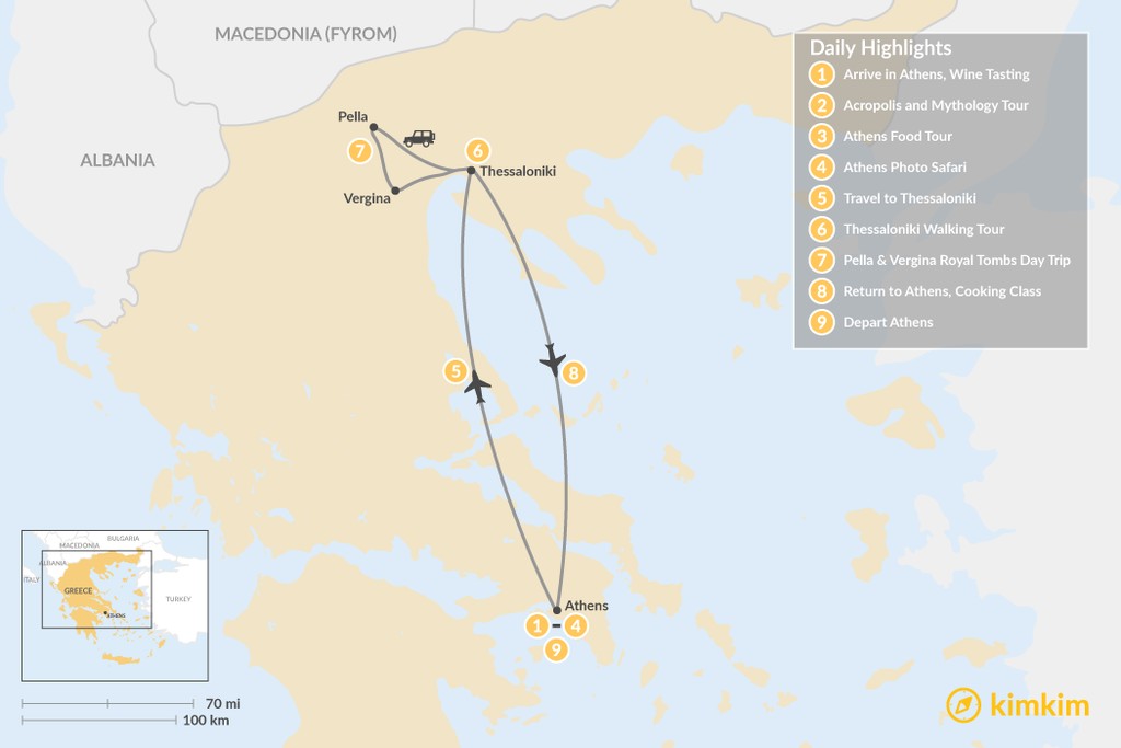 Map of Urban Adventures and History in Athens & Thessaloniki – 9 Days