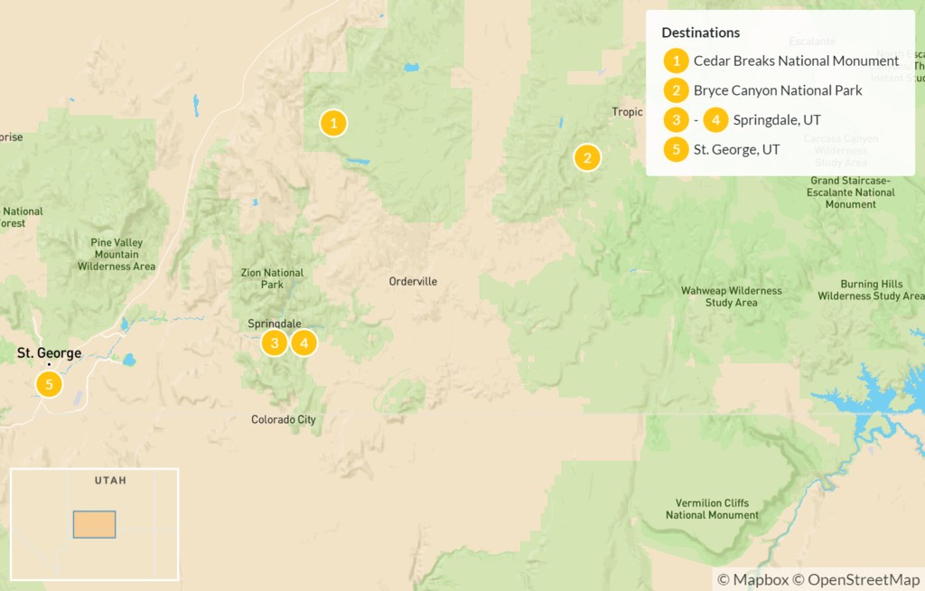 Map of Utah’s National Parks: Hike and Bike Tour – 6 Days