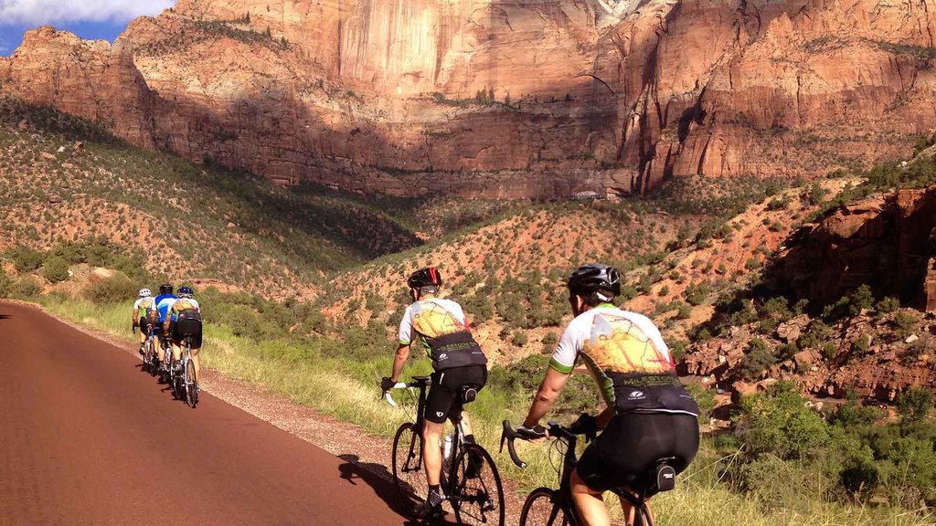 - Ride Zion’s famous red roads past the iconic Checkerboard Mesa