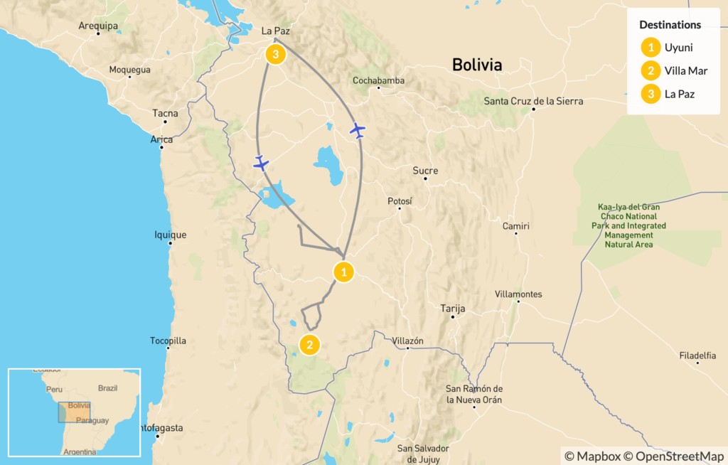 If there’s time left over when you return to La Paz, go for a short hike to stretch your legs after the drive. Reach Uyuni in the mid-afternoon and transfer to your evening flight back to La Paz. Safe travels!