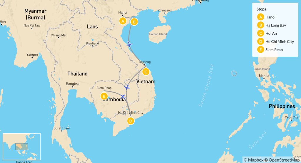 Map of Vietnam & Cambodia Culture Escape – 10 Days