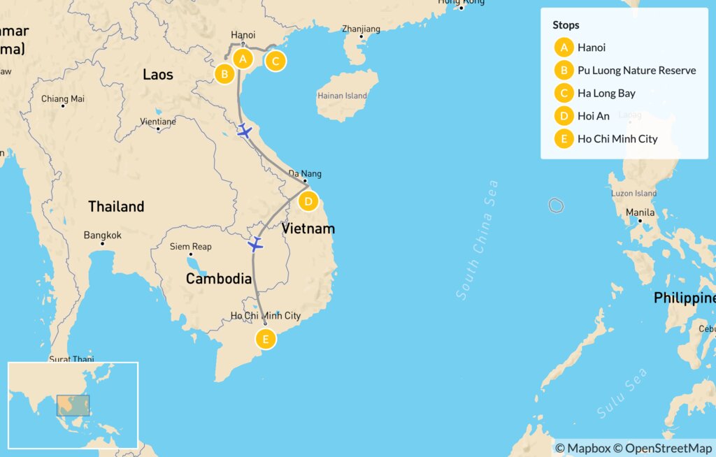 Map of Vietnam Culture & Heritage: Hanoi to Ho Chi Minh – 12 Days