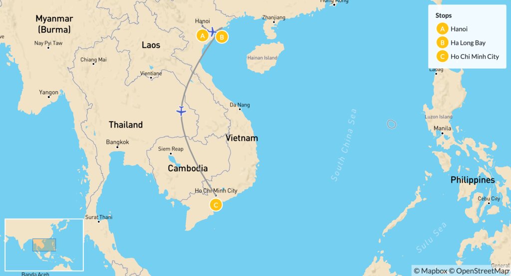 Welcome to Vietnam! This country is a beguiling mix of the old and the new. You’ll see examples of the latter in the shimmering sky-rise buildings of its cities, while the former is represented in its historic landmarks and neighborhoods dating back millennia. You’ll arrive in the capital of Hanoi, one of the best places to see Vietnam’s thousands of years of history brushing up against the modern world.