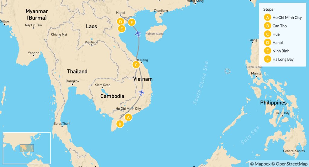 Enjoy a first-class escape to Vietnam for two weeks of adventure without sacrificing comfort. It starts with a highlights tour of Ho Chi Minh City followed by cycling and farm tours around the famous Mekong Delta. After visiting the awe-inspiring Imperial City in Hue, you’ll continue north to live the high life in Hanoi before wrapping up the trip at the otherworldly dreamscapes of Ninh Binh and Ha Long Bay.