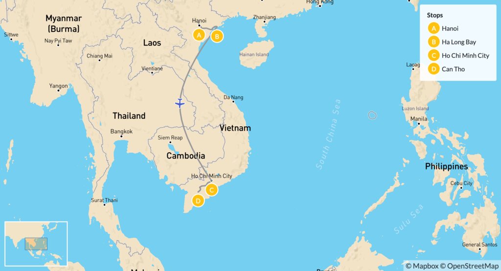 Map of Vietnam Luxury Highlights: Hanoi to Ho Chi Minh City – 10 Days