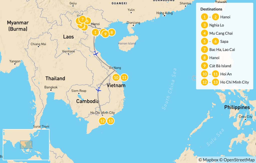 Spend 14 days exploring some of the far corners and favorite cities of Vietnam. You’ll not only explore Hanoi and Ho Chi Minh City but also trek through the mountainous northwest, visiting ethnic minority villages. Cruise through limestone formations to Cat Ba island and along the Mekong river to see what life is like across the country.