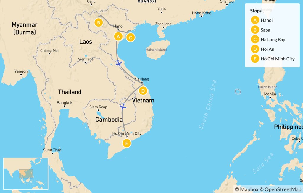 Map of Vietnam Three Regions Food Tour – 15 Days