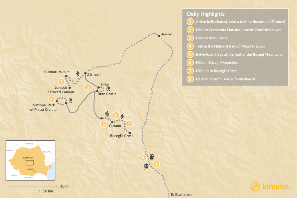 Welcome to Bucharest – the capital of Romania and the most convenient place to start your Romanian adventures. A guide will meet you here with road books and maps. Once you have everything you need from the guide, take the train to Brașov, then to Zărnești, a nondescript little town where you’ll spend your first night on the edge of a national park.