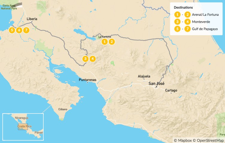 On this family-oriented 8-day adventure, you’ll explore Costa Rica’s top natural attractions, from the towering Arenal Volcano and its nearby hot springs to the beautiful beaches of Guanacaste. The itinerary takes you to three distinct regions: Arenal and La Fortuna, the Monteverde cloud forest, and the pristine Gulf of Papagayo. There are plenty of kid-friendly activities along the way, including waterfall hikes, wildlife viewing tours, and a jungle canopy adventure, plus optional excursions to try kayaking and whitewater rafting.