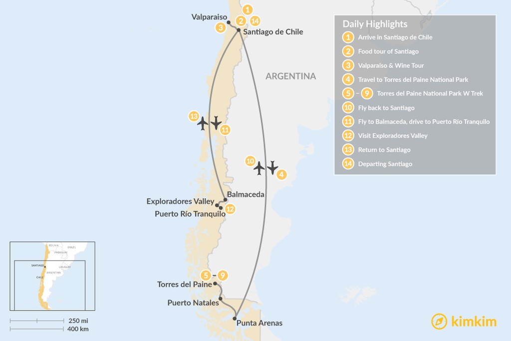 | Day 10 | Torres del Paine to Santiago | Santiago |