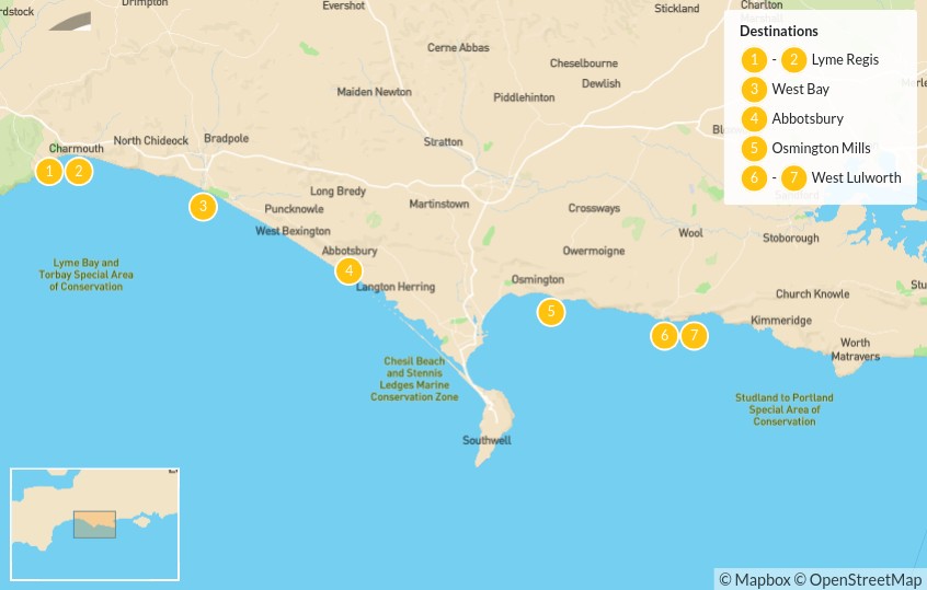 | Day 1 | Arrive in Lyme Regis | Lyme Regis |