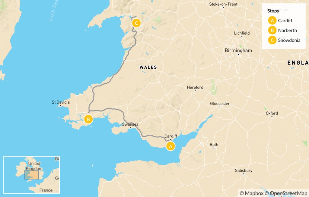 Map of Welsh History & Culture: Cardiff, Narberth & Snowdonia – 7 Days