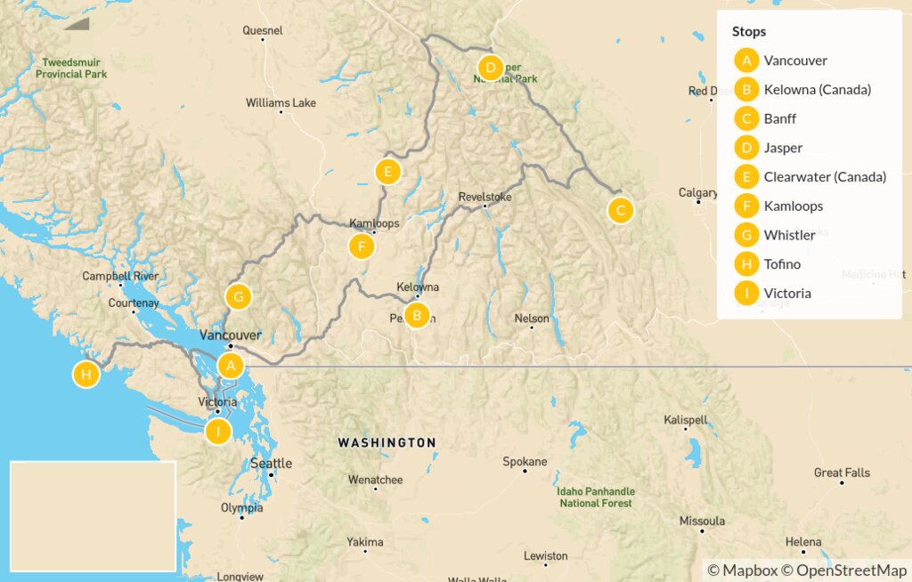 Map of Western Canada Road Trip: From the Rockies to the Pacific – 15 Days