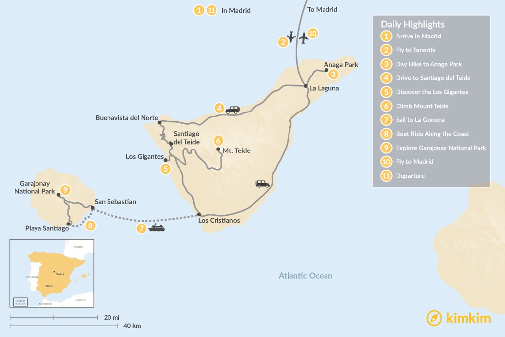 Map of Wild Canary Islands: Madrid, Tenerife & La Gomera – 11 Days
