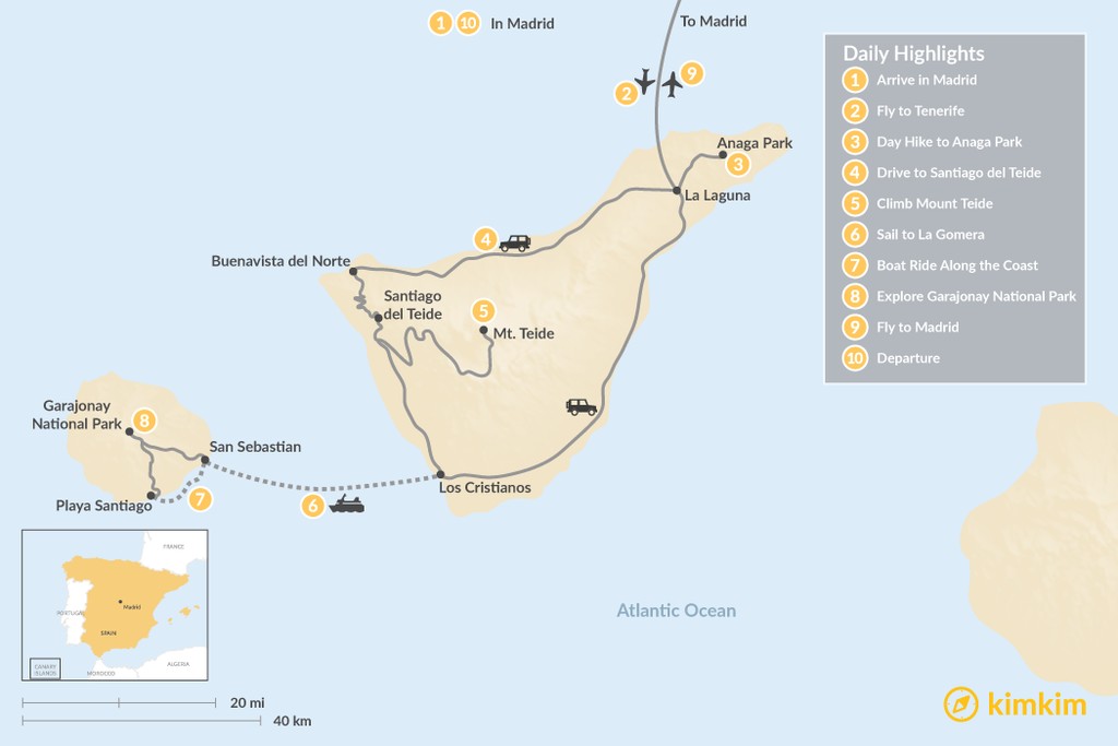 Map of Wild Canary Islands Road Trip: Madrid, Tenerife & La Gomera – 10 Days