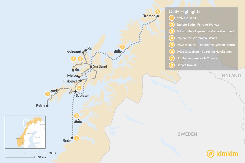 Map of Wild Islands in Norway’s Arctic – 8 Days