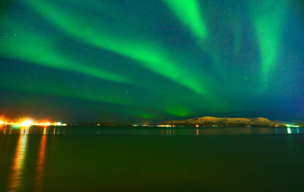 The two-hour cruise takes you into the southern part of Faxaflói, well away from the city lights. You’ll head out to the open bay under a vast starry sky, on the lookout for the wonderous blue, green and red lights moving across the night sky. There are warm overalls provided for those guests who want to brave the elements and get those immediate views, or you can sit in the heated indoor saloon and watch the skies from there.