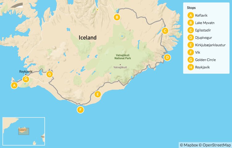 Map of Wild & Wintry Iceland: Northern Lights, Glaciers, & Volcanoes – 10 Days