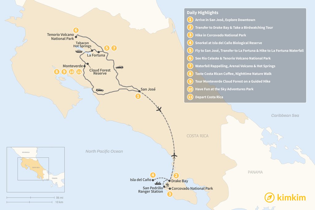 Map of Wildlife Luxury Adventure in Arenal, Monteverde & the Osa Peninsula – 11 Days
