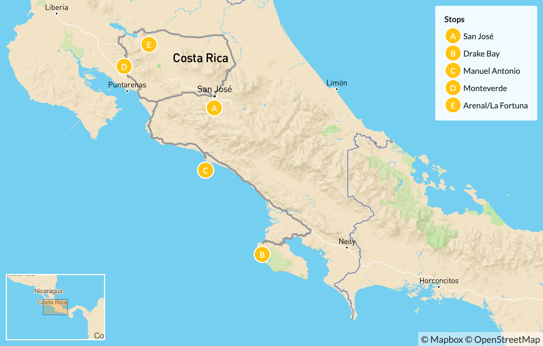 Map of Wildlife Luxury Adventure in Arenal, Monteverde & the Osa Peninsula – 16 Days