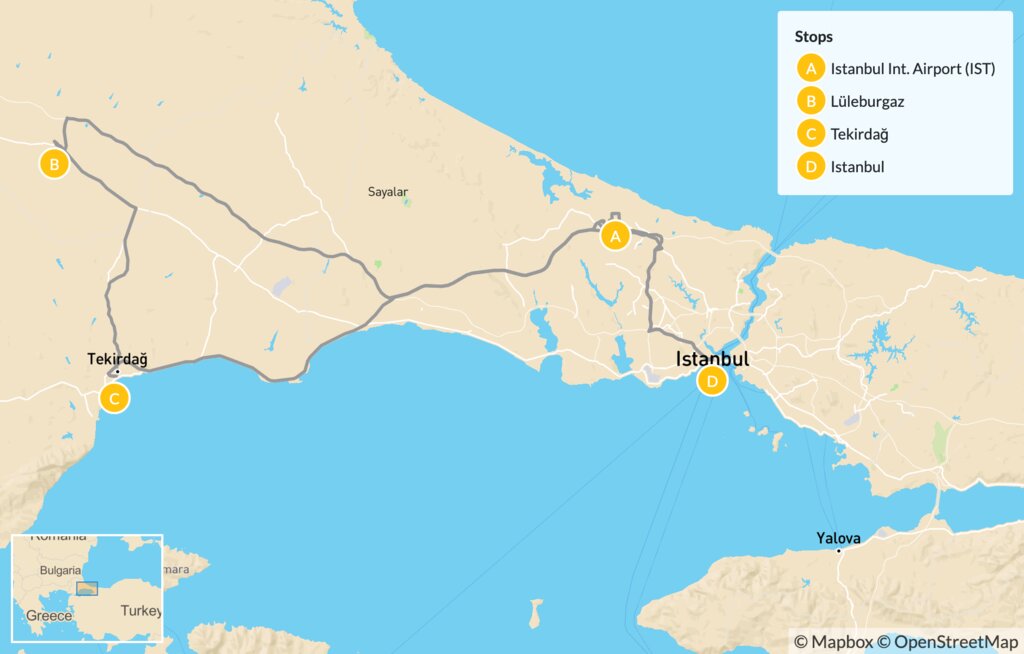 Map of Wine Tour & Highlights of Istanbul – 5 Days