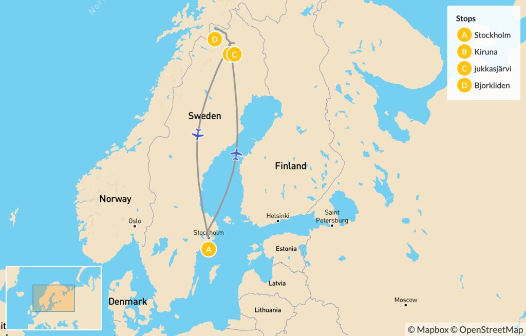 Map of Winter Aurora Adventure in Northern Sweden – 7 Days
