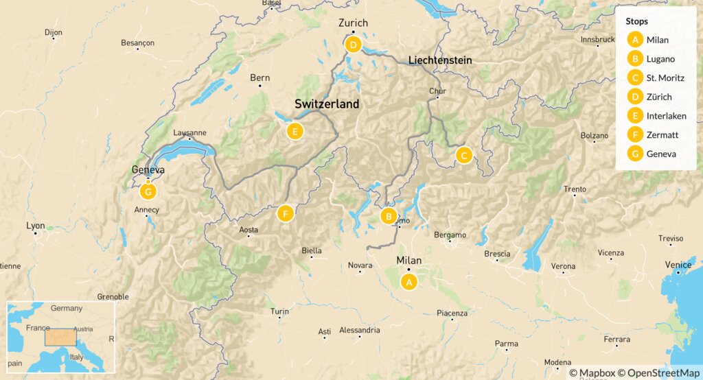 Map of Winter Escape to the Swiss Alps – 10 Days
