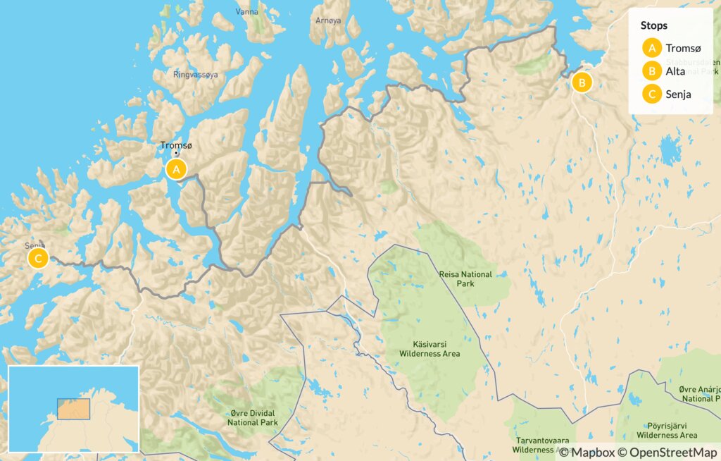 Map of Winter Family Adventure in Northern Norway – 10 Days