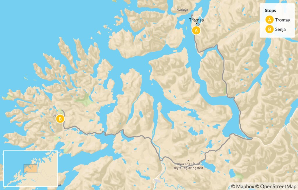 Map of Winter Family Trip to Norway: Tromsø & Senja – 7 Days