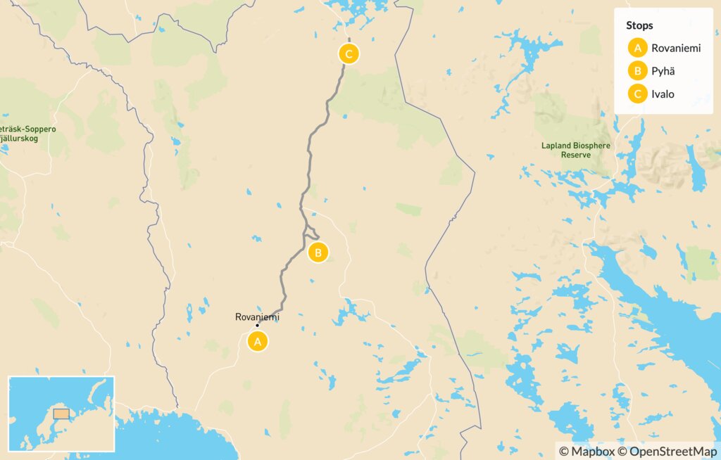Map of Winter Holiday in Finland’s Arctic Circle – 10 Days