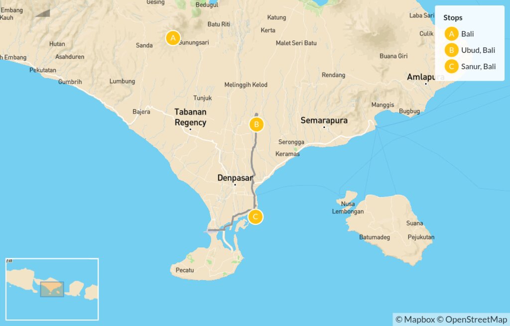 Map of Winter in Bali: Temples, Countryside & Beaches – 9 Days