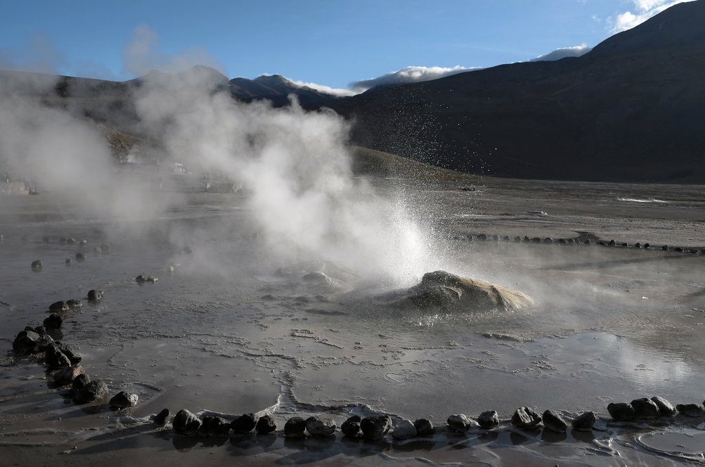 Today, leave your hotel early in the morning, sometime between 4.30 and 6.00 depending on the vehicle, the number of passengers, and the season. You’ll arrive at Tatio at the perfect time to admire the sunrise and the geysers steaming in the cold air of the Altiplano. This valley is very geologically active and surreal. Boiling hot clear water springs (70°C/160°F) spurt from a frozen ground of volcanic formations.