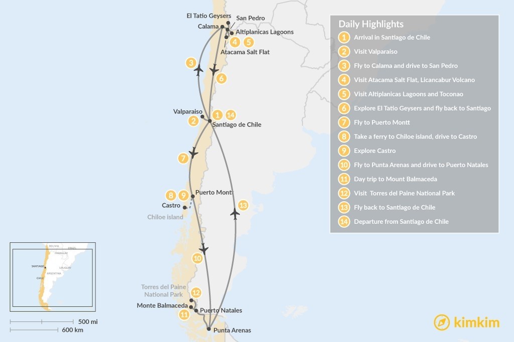 Map of Wonders of Chile – 14 Days
