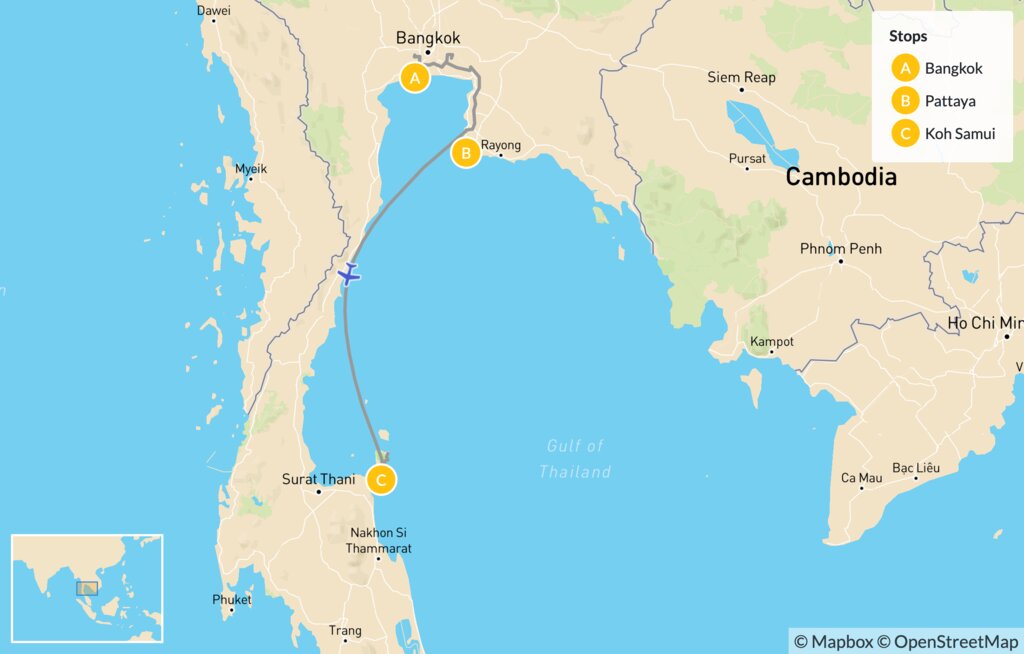 Map of Wonders of Thailand: Bangkok, Pattaya & Koh Samui – 9 Days