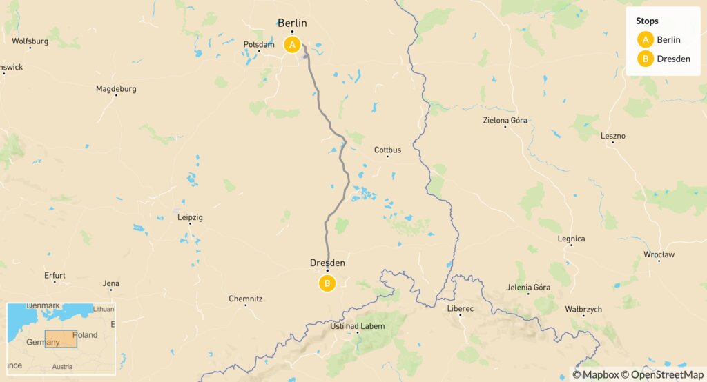Map of World War II History Tour: Berlin, Dresden & Northern Bohemia – 5 Days