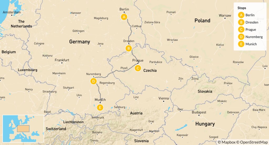 Map of World War II History Tour in Germany & the Czech Republic – 14 Days